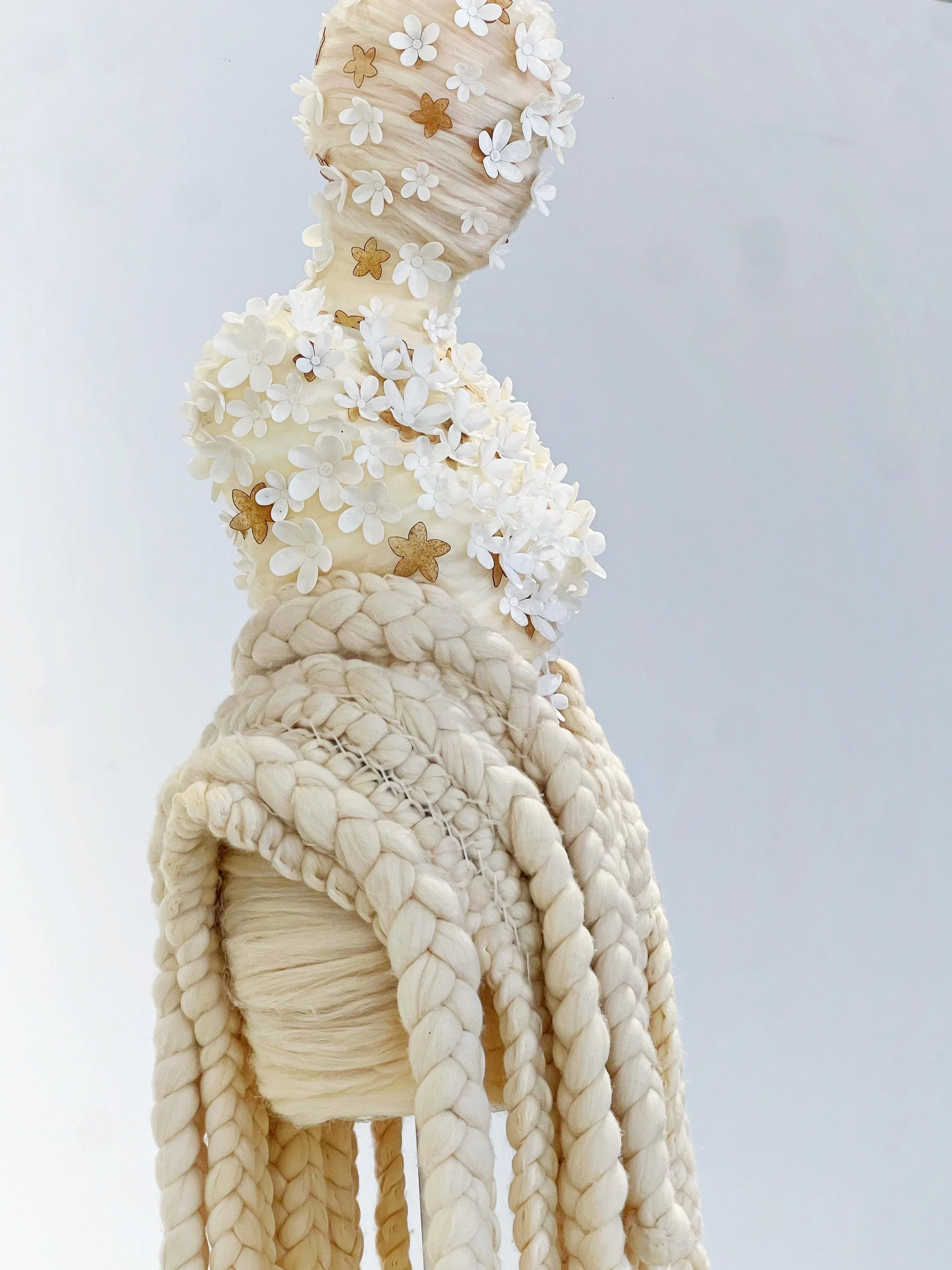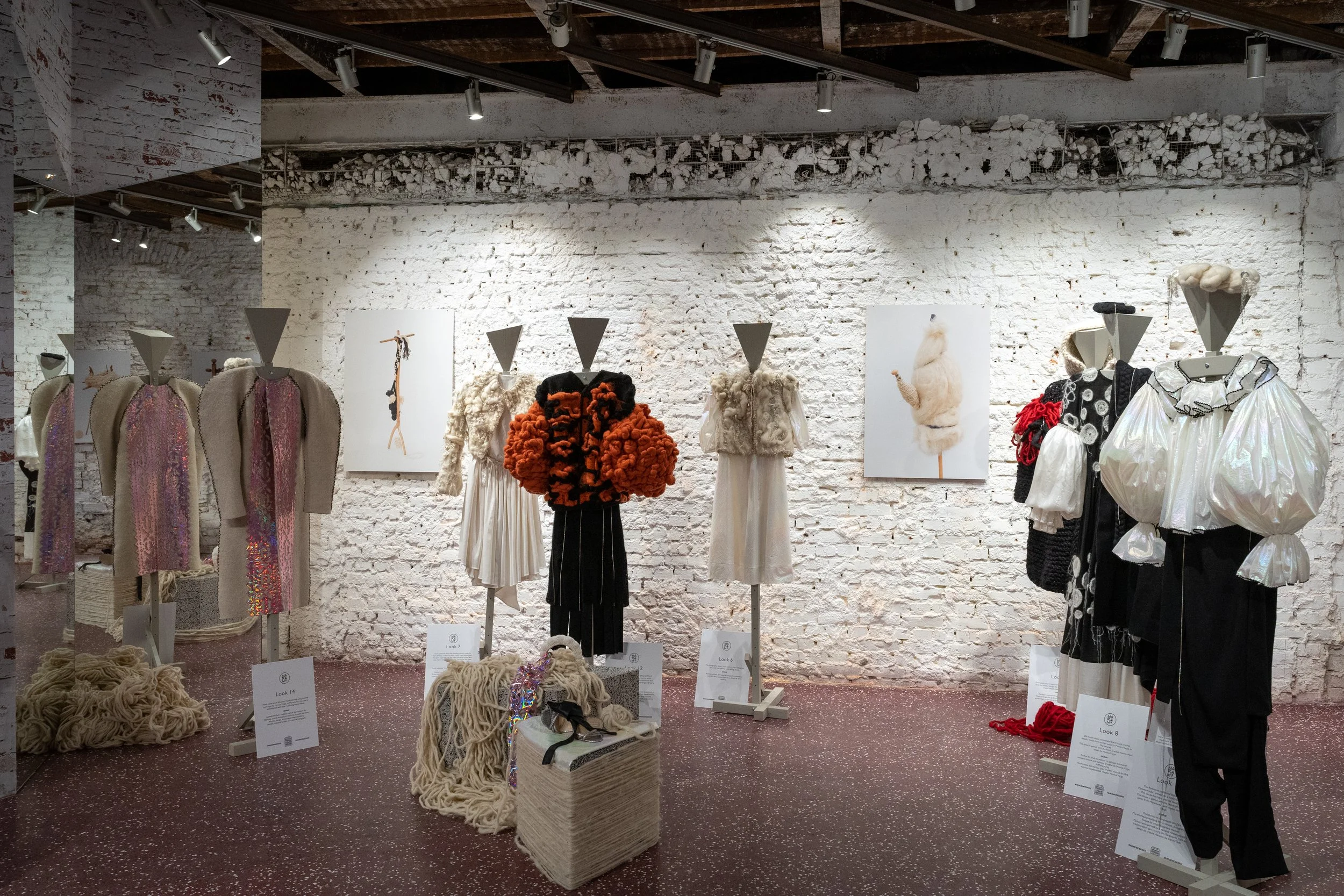Through garments and art installations, Andra traces the journeys of materials and the knowledge embedded in them. In projects such as Drumul lânii (The Road of Wool), she follows wool from shepherd to finished piece, foregrounding relationships between landscape, labour, and making. Her recent installation Root Rot, presented at Quoz Arts Fest (Dubai, January 2025), explored cycles of decay and renewal through fragmented wool forms, bringing this research into dialogue with a broader audience.