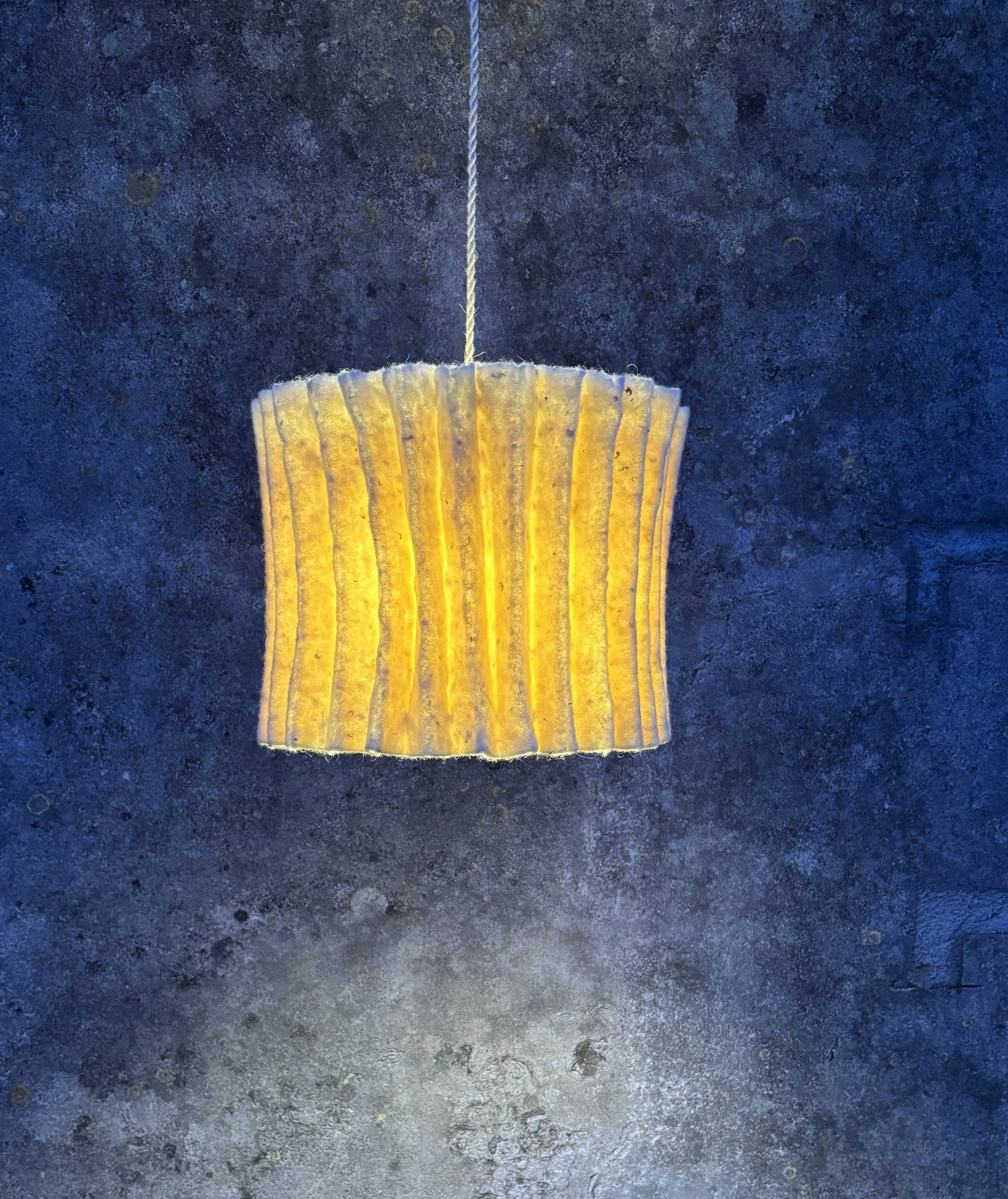 Our sheep, of the native Mallorcan breed, graze freely in the north of the island of Mallorca. From them, I carry out the entire process: from shearing —where I carefully select the best fleeces— to washing and carding the wool, which I then mainly transform into lighting pieces.
